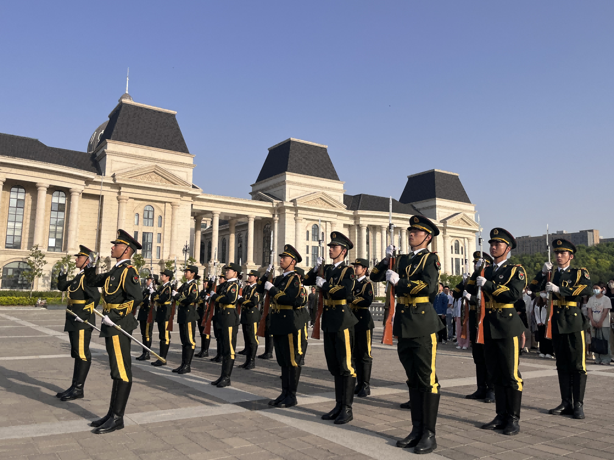 2023级研究生代表戚航、闫硕、张泽宇、曹倩倩在国旗下进行“青马诵读”,朗诵诗歌《青春中国》。