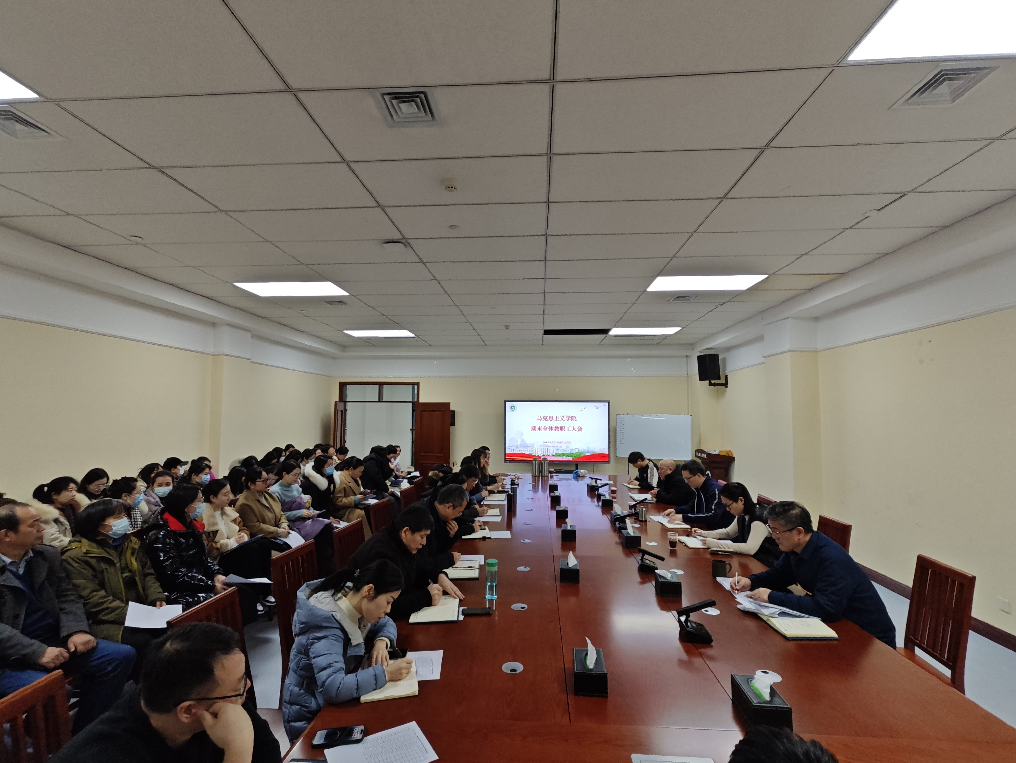 院长杜志强把学院2023年整体工作进行了总结。他重点总结了七件大事:学院党总支升格为党委;获批河南省示范性马克思主义学院;顺利完成教育部本科教育教学审核评估;马克思主义理论一级学科顺利完成第九批省级重点学科验收,并成功申报第十批省级重点学科;科研数量、质量、经费实现倍增;贯彻“马+农”特色导向,落实教育部校馆结对项目,与河南省博物院签约合作;完成“硬件”升级,优化教师办公条件。他指出,学院的发展离不开全体教师的共同努力,希望大家能够继续发扬奋斗精神,在假期做好科研工作,积极准备项目申报,做好课程备课,在新的一年取得更大成绩。学院将启动2024年工作计划,竭力服务教师成长、推动学院发展。