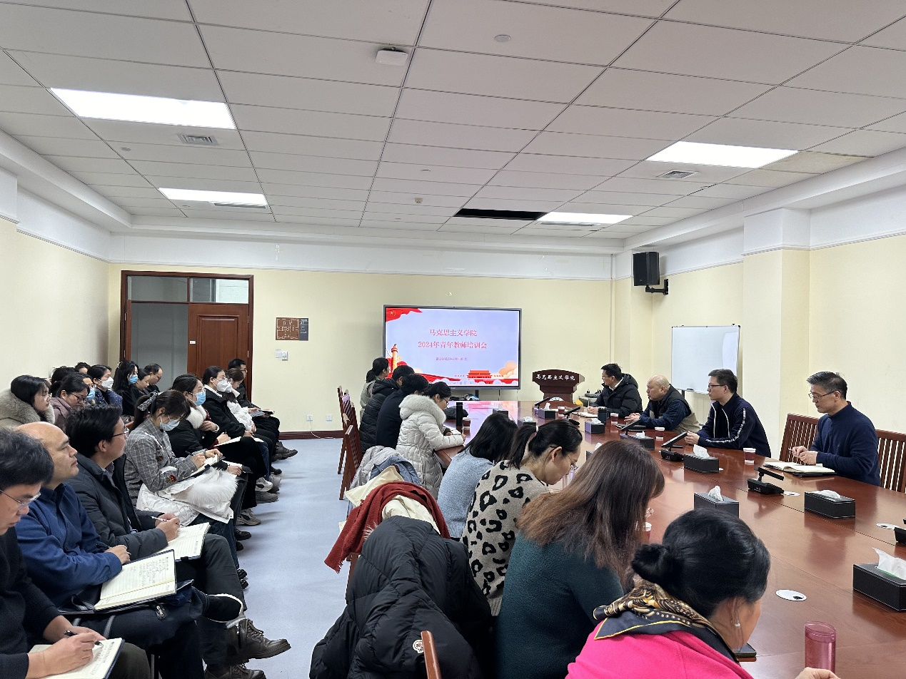 本网讯(通讯员:张倩)马克思主义学院于2月22日和3月2日在图书馆306会议室组织新学期青年教师培训会,院领导班子、近五年来入职的青年教师、教研室主任、青年教师导师、学院督导共同参加,活动由名师工作室承办。
