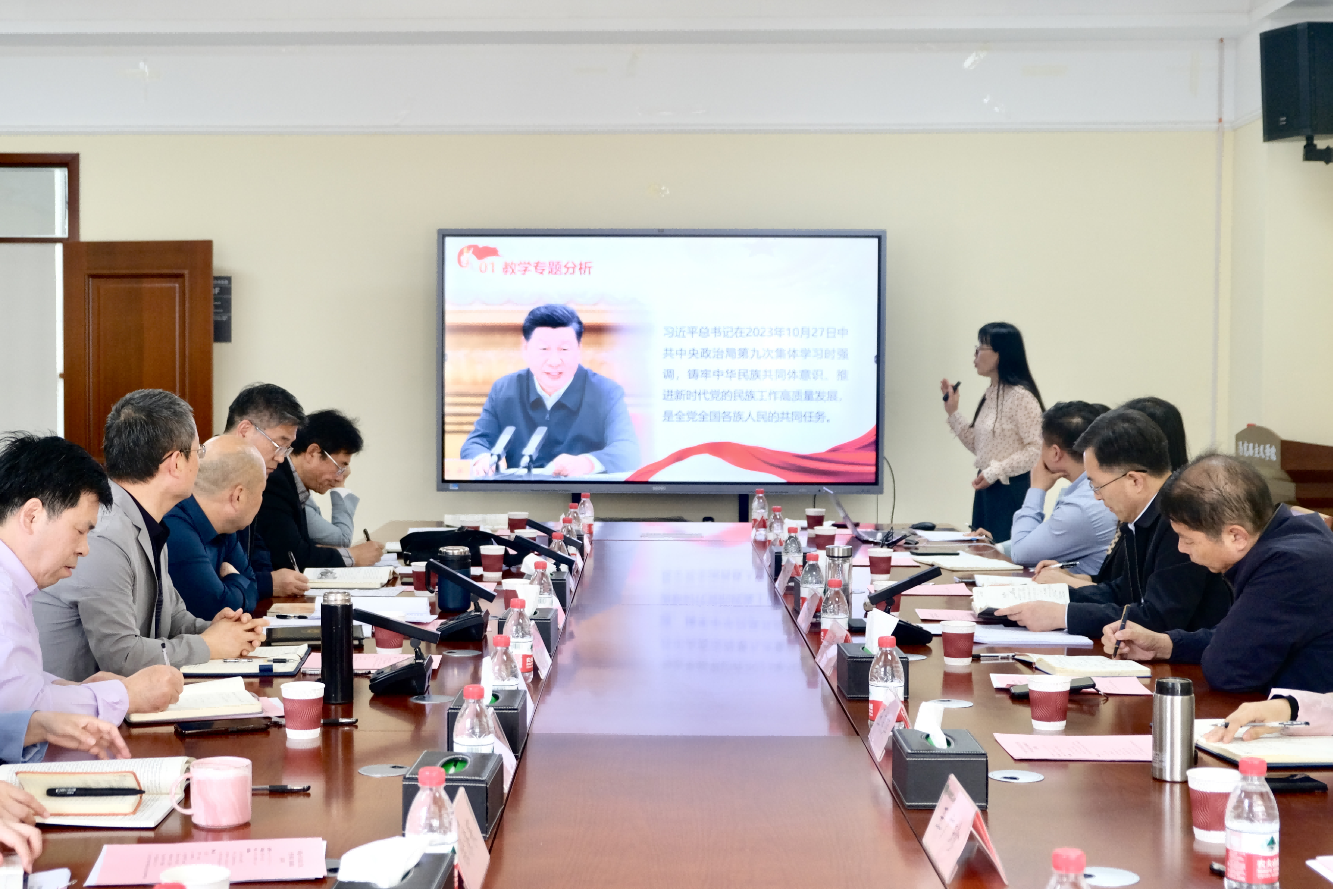 备课会上,王雷松教授、董慧副教授分别就“读懂中国式现代化”“铸牢中华民族共同体意识”两个专题进行说课,赵民学、秦剑军、孙玉健、尹红领四位教授分别进行点评。