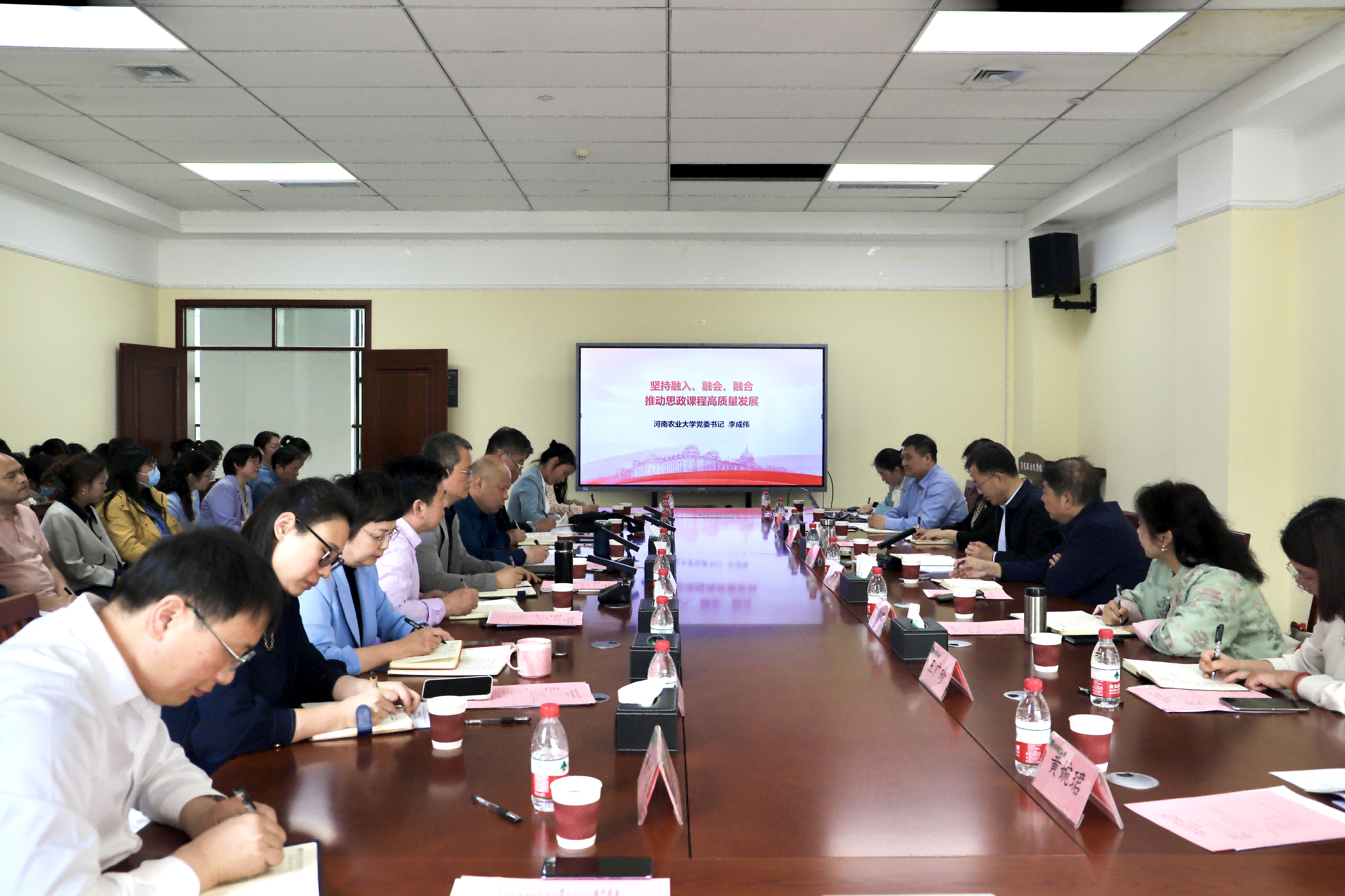 (通讯员:王海晶)4月30日,我院《形势与政策》集体备课会在图书馆306会议室举行。校党委书记李成伟出席会议并做专题辅导报告。学校相关职能部门负责人、学院全体教师、形势与政策课专兼职教师参加会议。会议由院长杜志强主持。