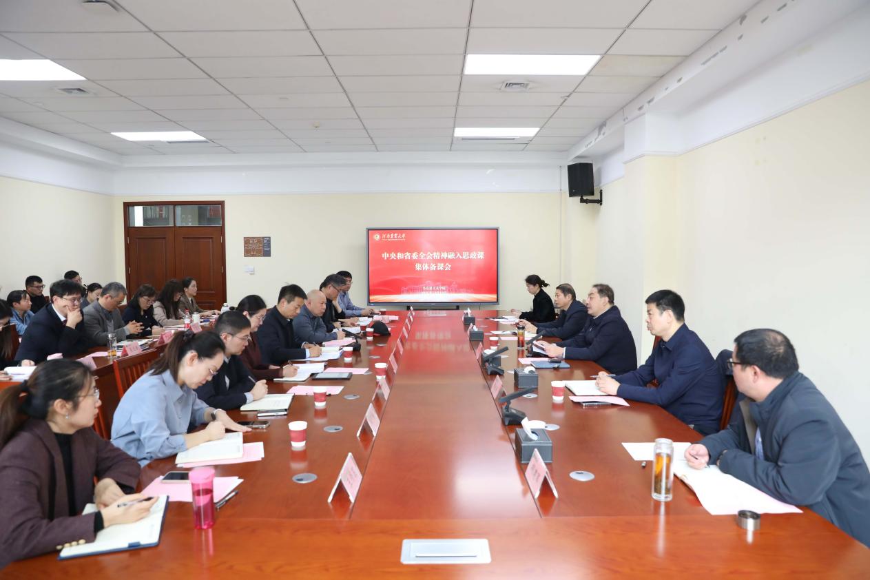 (通讯员:王海晶 图片:黄璞)为深入学习贯彻党的二十届四中全会精神,以及省委十一届十次全会精神,切实推动党的最新理论成果和战略部署系统、有效地融入思想政治理论课教学,12月19日,马克思主义学院在龙子湖校区召开专题集体备课会。校党委书记岳杰勇出席会议并讲话。校党委副书记、工会主席邹松涛,党委宣传部、教务处负责人,马克思主义学院班子成员、思政课教师代表、理论宣讲团成员参加会议。