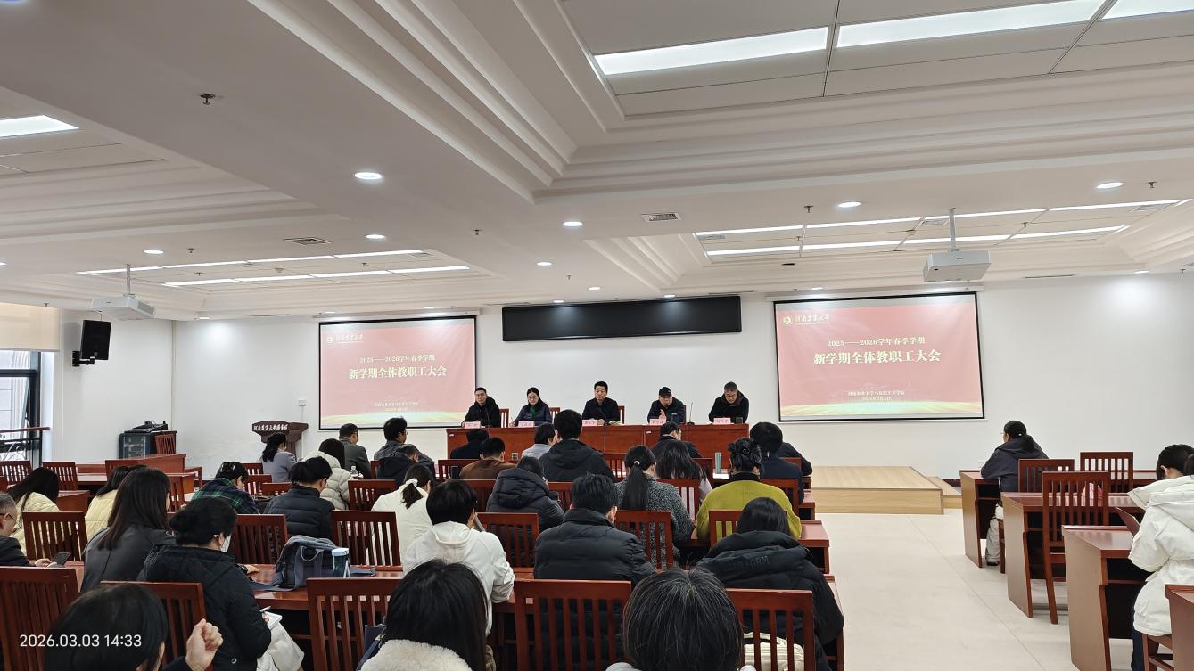 院党委书记周红飞从寒假工作、学科建设、制度建设、党建工作等方面总结和部署新学期发展目标。他强调,新学期学院将进一步围绕党的建设、学科建设、思政课教学等工作,建设团结紧张、严肃活泼的工作氛围。一是要坚持党建引领,提高组织生活质量,强化支部建设、意识形态和安全工作,以高质量党建推动高质量发展;二是要持续推动学科建设,引导教师科研项目申报,推动科研团队建设;三是结合学院实际开展制度改革,以制度建设推动各方面工作。