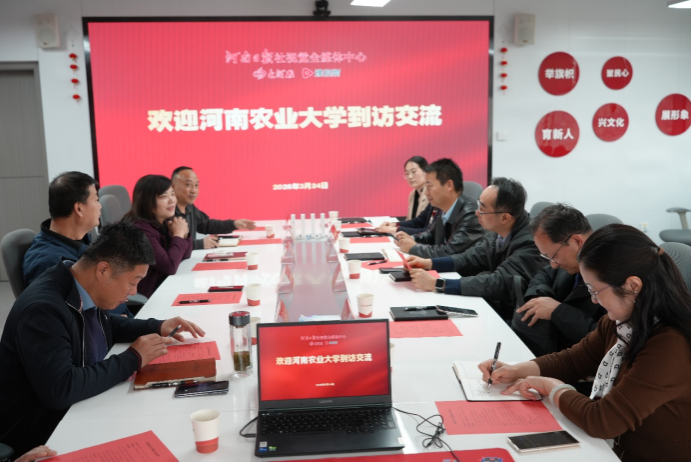 为深入落实“访企拓岗促就业”专项行动,精准对接行业人才需求,2026年3月24日下午,河南农业大学马克思主义学院党委书记周红飞、党委副书记王凤云,与经济与管理学院、国际教育学院相关负责人一同赴大河报(河南日报社视觉中心)开展交流调研,共商校媒协同育人与毕业生就业对接新路径。