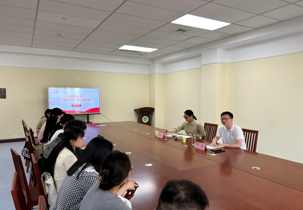 (文 申子辰 图 李秋潭)为进一步加强党员教育,推进主题教育走深走实。6月6日下午,我院在图书馆306会议室举办2023届毕业生最后一堂党课。学院党委书记李强主讲,副书记徐涤寒主持会议,全体研究生党员参加。