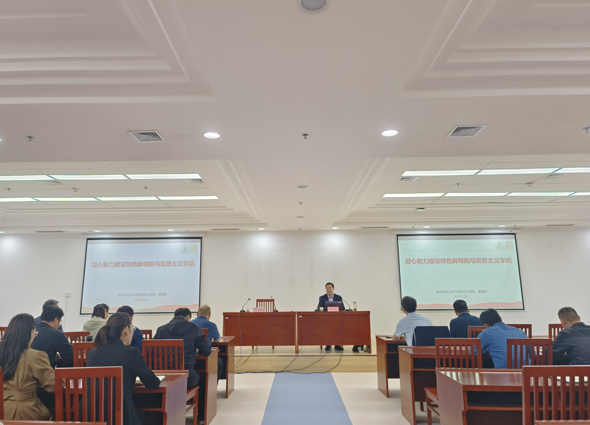 (通讯员 孙萍萍)9月26日,华中农业大学马克思主义学院院长梁伟军应邀做客我院“求是讲坛”。报告会在图书馆302报告厅举行,我院领导班子、教师代表、全体研究生参加,会议由院长杜志强主持。