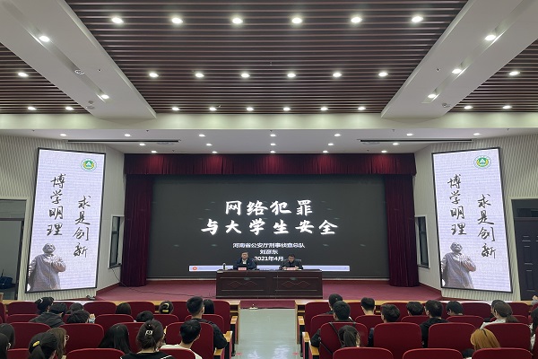 本网讯(通讯员 刘霄晗)4月15日是全民国家安全教育日,为让师生了解当前国家网络安全形式,加强安全防护意识、保密意识和维护国家安全意识,更好的维护国家安全、自身安全和校园安全。我院特邀河南省公安厅刑事侦查总队总队长、河南省打击治理电信网络诈骗犯罪联席会议办公室主任、武汉大学马克思主义学院思政专业法学博士刘彦东做客“求是讲坛”,在繁塔楼大教室1报告厅作“网络犯罪与大学生安全”专题讲座,党总支书记马菲主持会议,马院师生及其他学院部分学生参加了报告会。