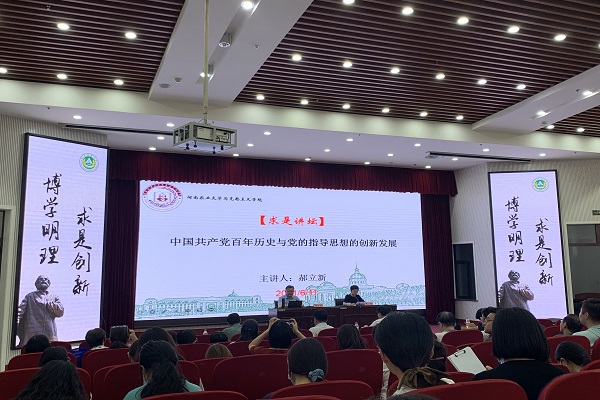 教授郝立新教授应邀作客我院求是讲坛,作了题为“中国共产党百年历史与党的指导思想的创新发展”的专题报告。学院全体师生参加了报告会,院长陈娱主持报告会。