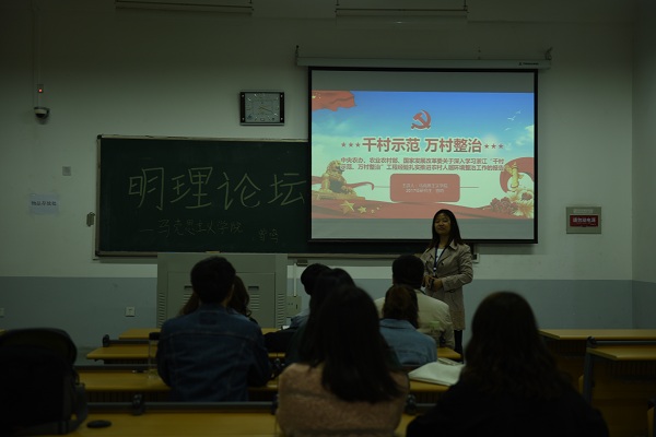 本网讯(通讯员 苏新雯 )4月15日晚,青年马克思主义研究会在龙子湖校区繁塔楼D座203教室举行了第十八期明理论坛。马克思主义学院研究生曾鸣以“学习浙江‘千万工程’,助力中原乡村振兴”为主题,为青年马克思主义研究会全体成员作了精彩的讲解。