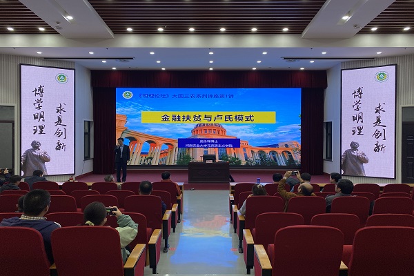 本网讯(通讯员 韩林霞)11月4日晚上,校青年马克思主义研究会在龙子湖校区繁塔楼大教室一举办了第二十九期明理论坛。马克思主义学院庞永锋博士以“金融扶贫与卢氏模式”为主题,进行了《明理论坛》大国三农系列讲座第一讲,为龙子湖校区全校师生作了精彩的分享。