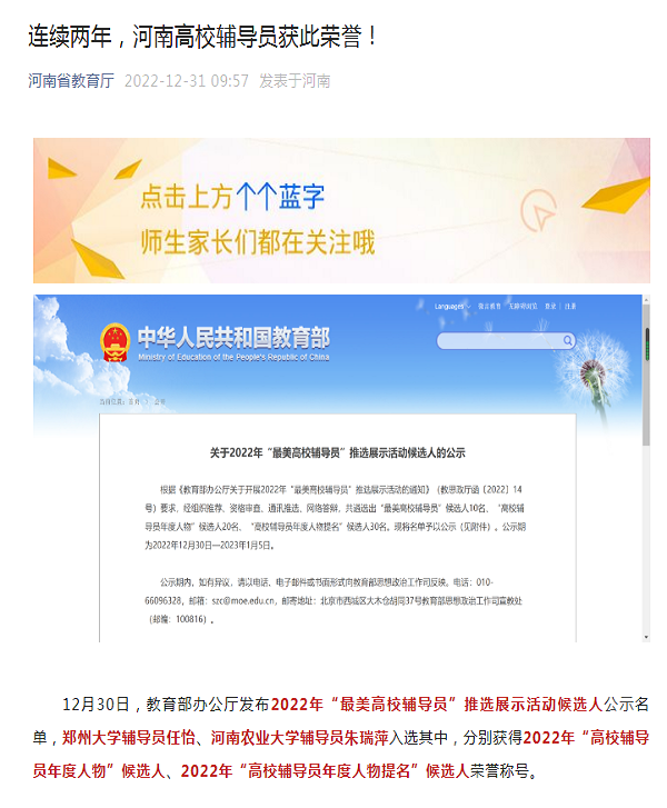 上一条:姚锡长代莉等参加完成的教学成果入选2022年高等 教育(本科)国家级教学成果奖候选项目