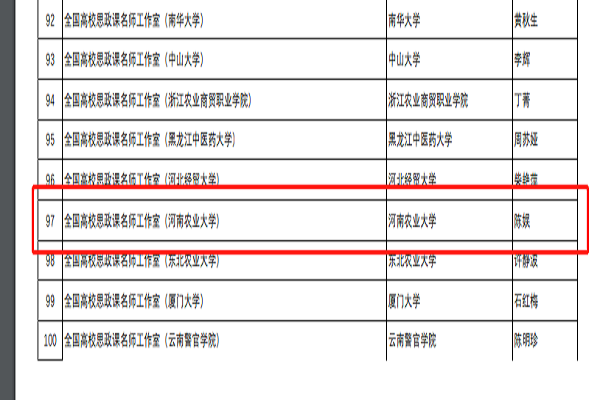 教育部社会科学司公布了2020-2022年高校思想政治理论课建设项目立项结果,我校马克思主义学院陈娱教授申报的《全国高校思政课名师工作室》项目获批立项。