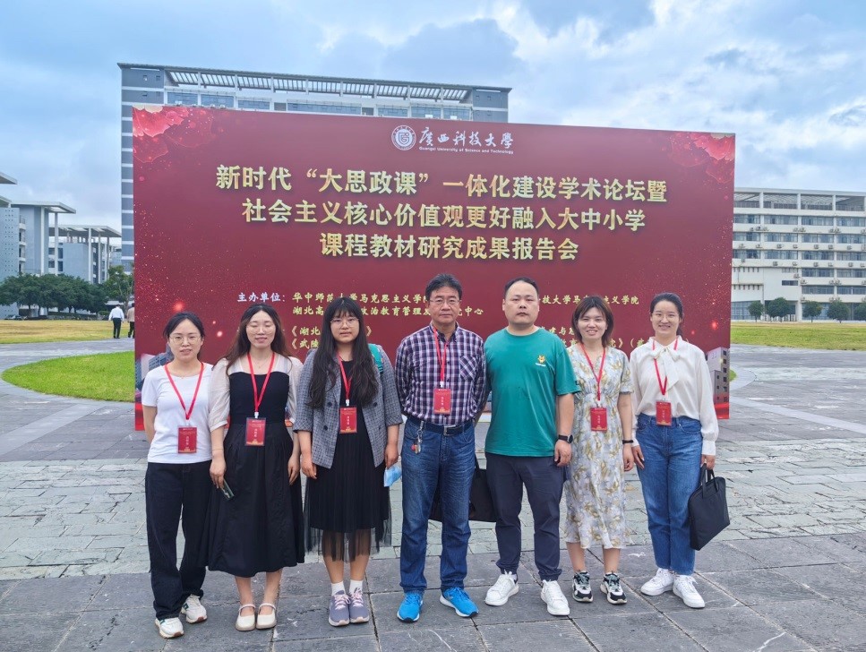 (通讯员:秦剑军)为深入学习贯彻习近平新时代中国特色社会主义思想,全面贯彻落实习近平总书记关于教育的重要论述及在学校思想政治理论课教师座谈会上的重要讲话精神,大力推进“大思政课”建设守正创新,5月26日—28日,由华中师范大学马克思主义学院、广西科技大学马克思主义学院、湖北高校思想政治教育管理发展研究中心联合主办,《湖北社会科学》《学校党建与思想教育》《武陵学刊》《思想政治教育管理研究》(武汉出版社)等多家媒体单位协办的新时代“大思政课”一体化建设学术论坛暨社会主义核心价值观更好融入大中小学课程教材研究成果报告会,在广西科技大学文昌校区多功能报告厅隆重举行。马克思主义与乡村振兴战略研究中心主任秦剑军教授一行应邀参加了此次大会。