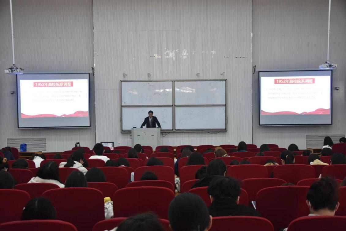 秦剑军以学习党史和新中国史的重大意义为切入点,从“社会主义革命和建设时期”、“社会主义建设艰辛探索时期”、“改革开放和社会主义现代化建设新时期”三个历史阶段,系统讲述了中国共产党团结带领中国人民不断把中国革命、建设、改革事业推向前进的奋斗历史,生动鲜活地展示了“从改天换地到翻天覆地伟大征程”的历史长卷。同时,他讲述了农大从河南大学堂-河南公立农业专门学校-河南大学农学院-河南农学院到河南农业大学的发展历程。秦剑军用幽默风趣的语言和激情昂扬的精神状态为参会师生带来了一场别开生面的精彩报告会,鼓励外院学子以史为鉴、开创未来,埋头苦干、勇毅前行,为全面推进中华民族伟大复兴新征程贡献青春力量。