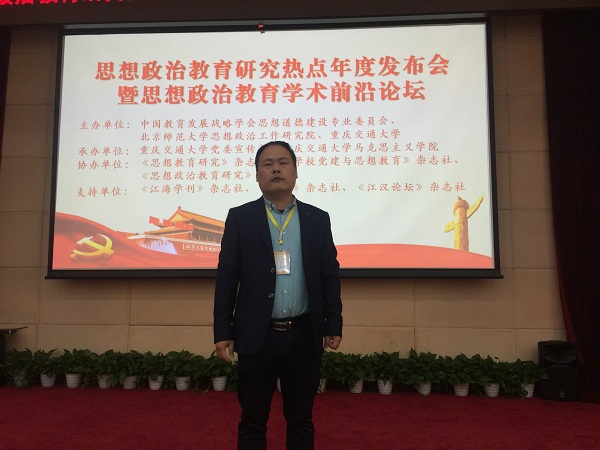 本网讯(通讯员:宗高峰 曹广伟)10月17日-18日,我院青年教师宗高峰赴重庆交大参加“思想政治教育研究热点年度发布会暨思想政治教育学术前沿论坛”,全国120余家单位近200名思想政治教育领域专家学者出席会议。